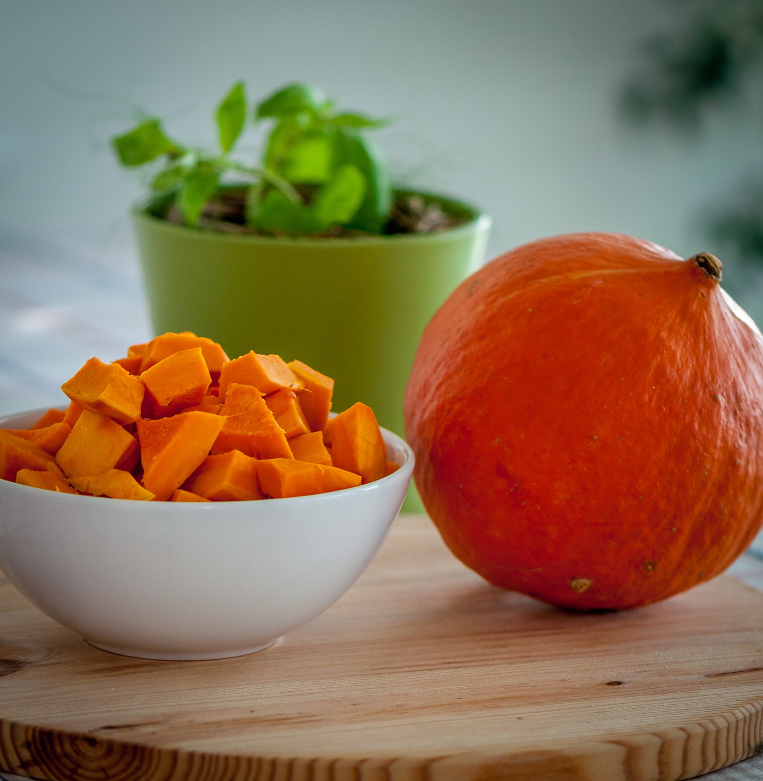 Dýni nakrájejte, bez semínek dejte uvařit v malém množství nesolené vody. Pokud je pěkná, nemusíte ani loupat. Když je měkká, slijte a rovnou v hrnci rozmačkejte na kaši.