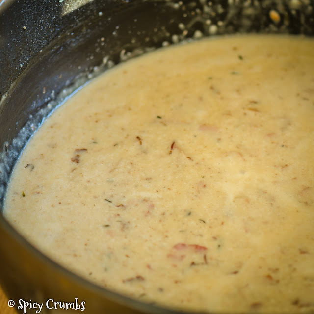 Jednotlivé porce vyndejte z pekáče a omáčku dejte vařit. V kelímku šlehačky rozmíchejte 2 ČL hladké mouky, přidejte k omáčce a míchejte. Provařte asi 5 – 10 minut na středním plameni. Dochuťte, pokud je třeba.