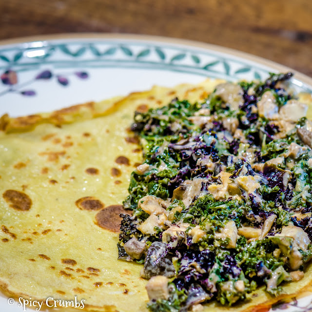 Špaldovo pohankové palačinky nebo čistě pohankové palačinky jsou výbornou a zdravější alternativou oblíbeného sladkého jídla. A musím říct, že jsou výborné. Těsto jsem dělala podle stejného receptu jako zde, jen jsem hladkou mouku nahradila napůl špaldovou s pohankovou. Můžete je připravit samozřejmě s marmeládou nebo ovocem, ale zkuste i slanou, třeba právě zeleninovou náplň, budete překvapeni, jak si pochutnáte.