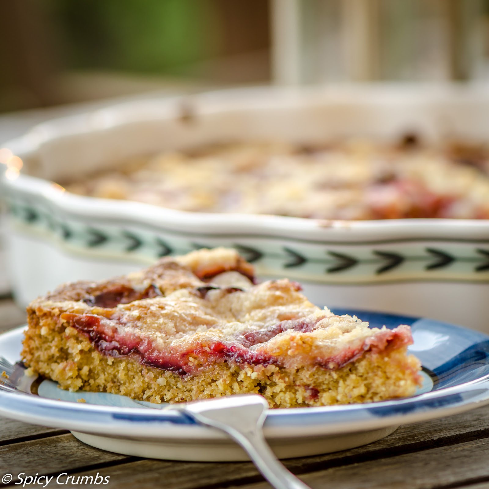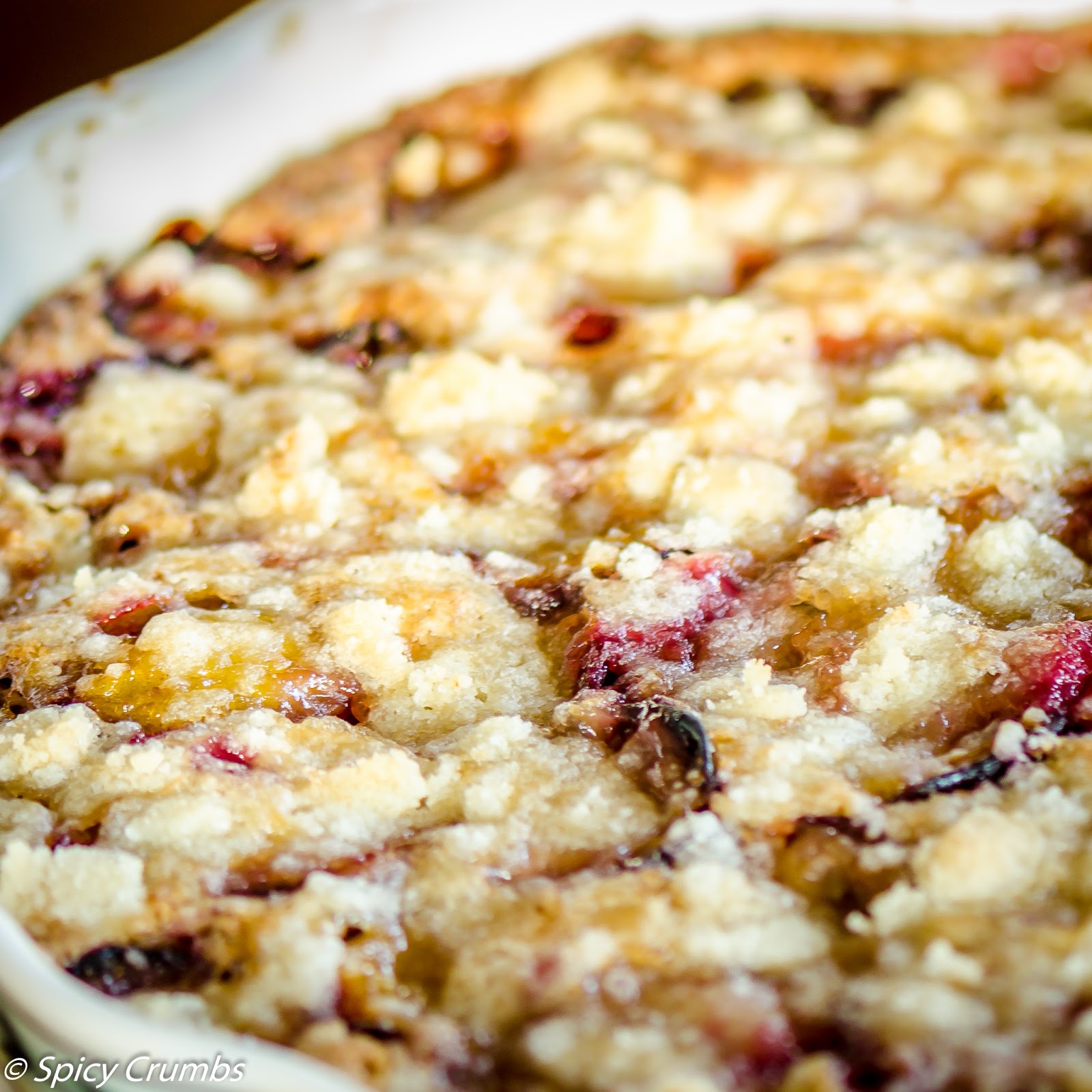 Navrch dejte švestky a posypte drobenkou.